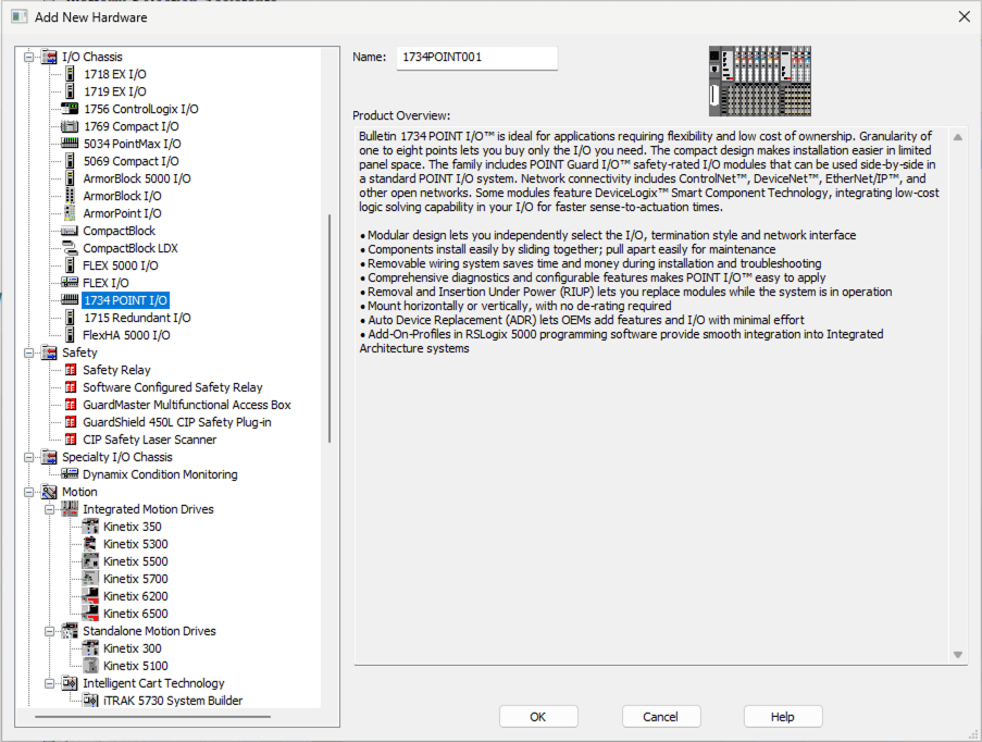 Start a Project: Create a new IAB project, Select Hardware from the templates. Use the hardware wizard to create a 1734 POINT IO rack.