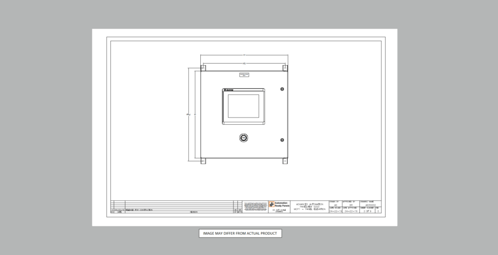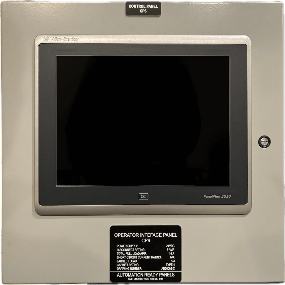 With this control panel, the HMI can be programmed with features and settings for operational flexibility when paired with an Advanced Automation PLC panel from Automation Ready Panels. Automation Ready Panels pre-programs the Advanced Automation Panel system with Discrete Input Delay (On/Off Timers) programming blocks to keep inputs from flutter or can be used for delay timers on levels, photoeyes, or other sensors. Analog Scaling programming blocks are used for analog inputs/outputs. Motor, VFD, and devices programming blocks are included with feature rich functionality (Rockwell Machine Builder Library V12 and Power Device Library V2.2). Statistical Analysis programming blocks can be used for average and standard deviation calcs for a sample size. Other communications types to Micro800 PLCs and SMC valve banks are included. A full state machine, shell sequencer programs, and a safety program have been added to reduce final integration time. The HMI has pre-designed graphics for OEE production data (current and previous shift), Cycle Timer, Production Rate, Recipe Status, State Machine and Sequencer Status, Alarming and Alarm Management, VFD control status and faults popup, Valve and device control and status popups, settings input boxes, motor valve analog discrete device objects with breadcrumbs, historical trending, user security, recipe management, PDF Viewer with manuals and electrical drawings embedded in the HMI, Cycle Reports, Preventive Maintenance Report, Emailing Reports, and Batch Tracking. If desired, one of Automation Ready Panels controls engineers can program up to one hour of free programming (**) to finish off your sequencer, meeting your applications needs. This means that a fully functional controls system can be delivered and ready to install, wire sensors and motors, power up, and the system is up and running.