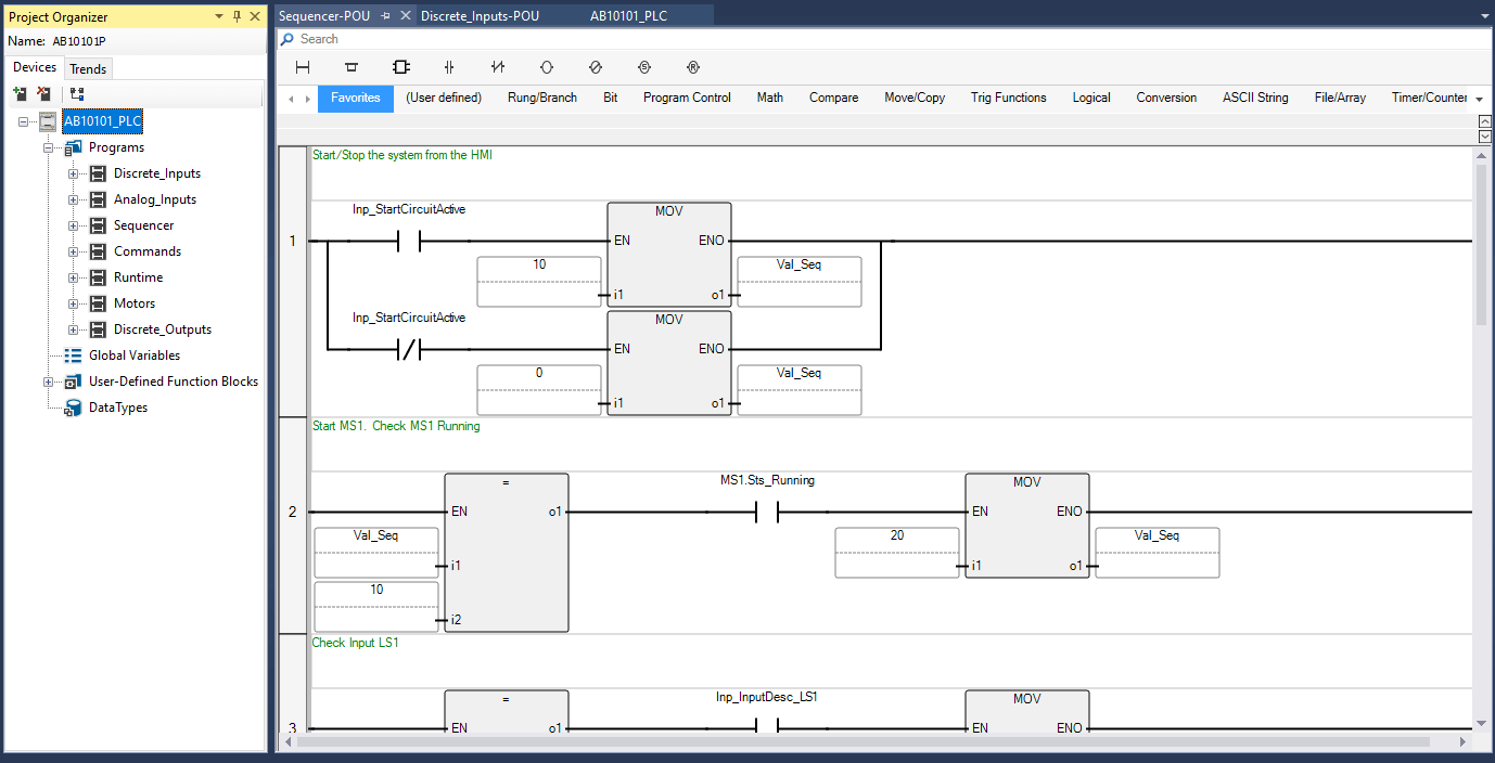 • Pre-programmed with On/Off Debounce AOIs (each input) and Basic Sequencer